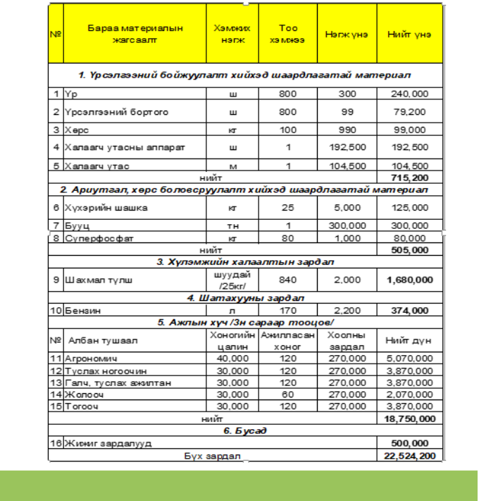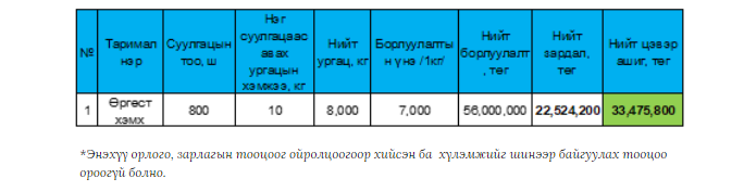 Тариалалт хийх талбайн хэмжээ: 500 м.кв өвлийн хүлэмж