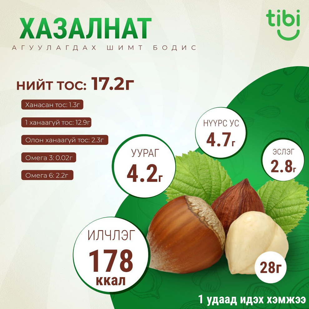 Мэлхий гэж нэрлэгддэг hazelnut бол Корилус модноос гардаг самрын нэг төрөл юм. Ихэнхдээ Турк, Итали, Испани, АНУ-д тариалдаг. Чихэрлэг амттай ба хуурч, нунтаглаж, нухаш болгож хэрэглэдэг. Бүх төрлийн хөнгөн зууш, салат, ногоо жимсний холимог смүүти, нарийн боов хийхэд хэрэглэж болно.